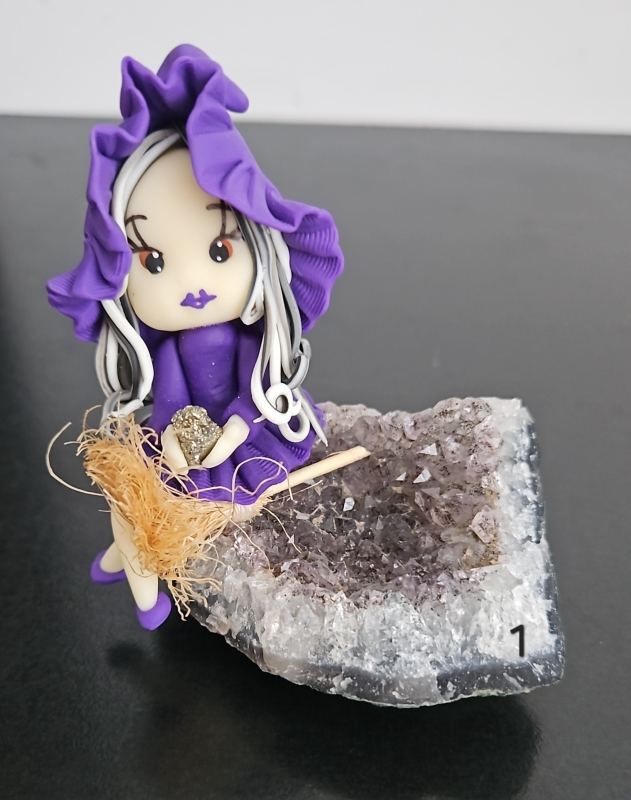 Deze leuke heksjes op amethist zijn handgemaakt. En allemaal anders. afmeting circa 10 - 15cm