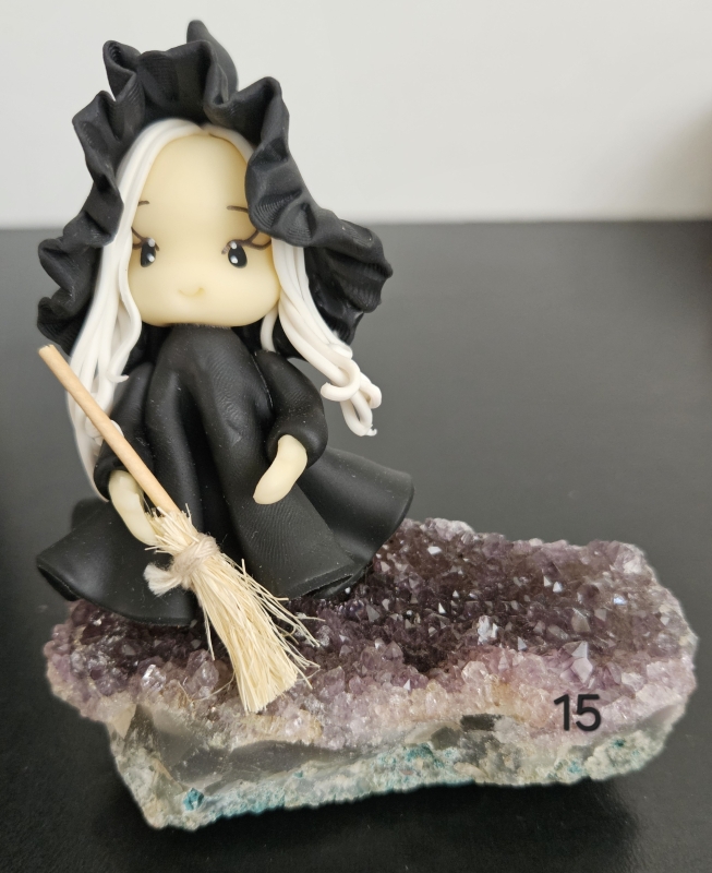 Deze leuke heksjes op amethist zijn handgemaakt. En allemaal anders.