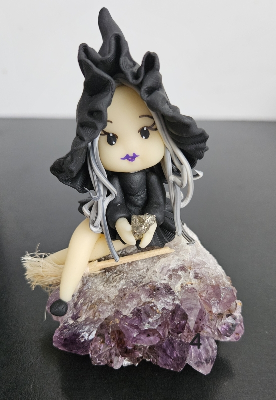 Deze leuke heksjes op amethist zijn handgemaakt. En allemaal anders.